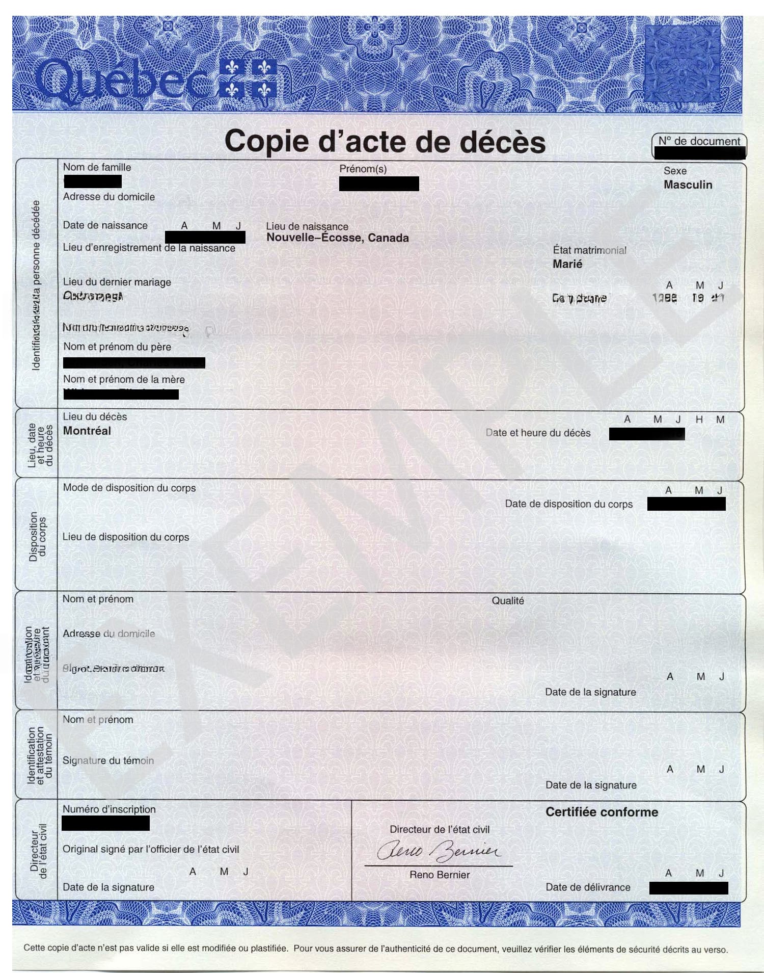 ProcurationDemande de recherches testamentaires(abrégé)Dans le cas où une information n'est pas connue de votre part, inscrire "Inconnue".Veuillez activer JavaScript dans votre navigateur pour remplir ce formulaire.Veuillez activer JavaScript dans votre navigateur pour remplir ce formulaire.INFORMATIONS CONCERNANT LA PERSONNE QUI NOUS MANDATE(Également appelée le « Demandeur »)Nom du demandeur *PrénomNomÊtes-vous le déclarant (la personne qui a payé les frais funéraires) au dossier de la maison funéraire? *OUINONCourriel du demandeur *Numéro de téléphone du demandeur *Adresse d'expédition des certificats *Adresse ligne 1VilleÉtat / Province / RégionCode postal--- Sélectionner : country ---AfghanistanAfrique du SudAlbanieAlgérieAllemagneAndorreAngolaAnguillaAntarctiqueAntigua-et-BarbudaArabie SaouditeArgentineArménieArubaAustralieAutricheAzerbaïdjanBahamasBahreïnBangladeshBarbadeBelgiqueBelizeBermudesBhoutanBiélorussieBolivie (État plurinational de)Bonaire, Saint Eustatius and SabaBosnie-HerzégovineBotswanaBrésilBulgarieBurkina FasoBurundiBéninCambodgeCamerounCanadaCap-VertChiliChineChypreColombieComoresCongoCongo (République démocratique du)Corée (République de)Corée (République populaire démocratique de)Costa RicaCroatieCubaCuraçaoCôte d’IvoireDanemarkDjiboutiDominiqueEspagneEstonieEswatini (Royaume de)FidjiFinlandeFranceFédération RusseGabonGambieGhanaGibraltarGrenadeGroenlandGrèceGuadeloupeGuamGuatemalaGuerneseyGuinéeGuinée équatorialeGuinée-BissauGuyaneGuyaneGéorgieGéorgie du Sud et îles Sandwich du SudHaïtiHondurasHong KongHongrieIndeIndonésieIrakIran (République islamique d’)Irlande (République d’)IslandeIsraëlItalieJamaïqueJaponJerseyJordanieKazakhstanKenyaKirghizistanKiribatiKosovoKoweïtLa RéunionLesothoLettonieLibanLiberiaLibyeLiechtensteinLituanieLuxembourgMacaoMacédoine du Nord (République de)MadagascarMalaisieMalawiMaldivesMaliMalteMarocMartiniqueMauritanieMayotteMexiqueMicronésie (États fédérés de)Moldova (République de)MonacoMongolieMontserratMonténégroMozambiqueMyanmarNamibieNauruNegara Brunei DarussalamNicaraguaNigerNigériaNiueNorvègeNouvelle-CalédonieNouvelle-ZélandeNépalOmanOugandaOuzbékistanPakistanPalauPalestine (État de)PanamaPapouasie-Nouvelle-GuinéeParaguayPays-BasPhilippinesPolognePolynésie françaisePorto RicoPortugalPérouQatarRoumanieRoyaume-Uni de Grande-Bretagne et d’Irlande du NordRwandaRépublique arabe syrienneRépublique centrafricaineRépublique dominicaineRépublique démocratique populaire du LaosRépublique tchèqueSahara occidentalSaint BarthélemySaint Pierre et MiquelonSaint-Christophe-et-NevisSaint-MarinSaint-Martin (partie française)Saint-Vincent-et-les GrenadinesSainte-Hélène, Ascension et Tristan da CunhaSainte-LucieSalvadorSamoaSamoa américainesSao Tomé et PrincipeSerbieSeychellesSierra LeoneSingapourSint Maarten (partie hollandaise)SlovaquieSlovénieSomalieSoudanSoudan du SudSri LankaSuisseSurinamSuèdeSénégalTadjikistanTaiwan, République de ChineTanzanie (République-Unie de)TchadTerres Australes FrançaisesTerritoire britannique de l’océan IndienThaïlandeTimor orientalTogoTokelauTongaTrinité et TobagoTunisieTurkménistanTurquieTuvaluUkraineUruguayVanuatuVenezuela (République bolivarienne du)VietnamWallis et FutunaYémenZambieZimbabweÉgypteÉmirats arabes unisÉquateurÉrythréeÉtat de la cité du VaticanÉtats-Unis d’AmériqueÉthiopieÎle BouvetÎle ChristmasÎle MauriceÎle NorfolkÎle de ManÎles CaïmansÎles Cocos (Keeling)Îles CookÎles Falkland (Malvinas)Îles FéroéÎles Heard et McDonaldÎles Mariannes du NordÎles MarshallÎles PitcairnÎles SalomonÎles Turques et CaïquesÎles Vierges (Américaines)Îles Vierges (Britanniques)Îles de Svalbard et Jan MayenÎles mineures américainesÎles ÅlandPaysSi vous prévoyez déménager ou être à l'extérieur du pays au moment de l'expédition des certificats (6 à 8 semaines), merci de nous aviser par courriel à info@docugo.caÀ défaut d’un avis transmis à l’avance, Docugo ne pourra être tenue responsable d’un retard, d’une erreur de livraison ou de la non-réception des certificats à l’adresse fournie.INFORMATIONS CONCERNANT LE DÉFUNTNom du défunt *PrénomNomMétier / profession (avant la retraite) *Adresse récente du défunt *Adresse ligne 1VilleÉtat / Province / RégionCode postalEst-ce que le défunt est né avant 1963? *OUINON Ajouter tout les adresses antérieurs connue (les plus significatives)Les registres de cette période ne sont pas toujours indexés par date de naissance ou numéro d’assurance sociale. La recherche peut donc nécessiter des informations supplémentaires telles que les adresses de résidence, la profession ou le nom de l’époux afin de permettre une identification adéquate.Adresse *Adresse ligne 1VilleÉtat / Province / RégionCode postal--- Sélectionner : country ---AfghanistanAfrique du SudAlbanieAlgérieAllemagneAndorreAngolaAnguillaAntarctiqueAntigua-et-BarbudaArabie SaouditeArgentineArménieArubaAustralieAutricheAzerbaïdjanBahamasBahreïnBangladeshBarbadeBelgiqueBelizeBermudesBhoutanBiélorussieBolivie (État plurinational de)Bonaire, Saint Eustatius and SabaBosnie-HerzégovineBotswanaBrésilBulgarieBurkina FasoBurundiBéninCambodgeCamerounCanadaCap-VertChiliChineChypreColombieComoresCongoCongo (République démocratique du)Corée (République de)Corée (République populaire démocratique de)Costa RicaCroatieCubaCuraçaoCôte d’IvoireDanemarkDjiboutiDominiqueEspagneEstonieEswatini (Royaume de)FidjiFinlandeFranceFédération RusseGabonGambieGhanaGibraltarGrenadeGroenlandGrèceGuadeloupeGuamGuatemalaGuerneseyGuinéeGuinée équatorialeGuinée-BissauGuyaneGuyaneGéorgieGéorgie du Sud et îles Sandwich du SudHaïtiHondurasHong KongHongrieIndeIndonésieIrakIran (République islamique d’)Irlande (République d’)IslandeIsraëlItalieJamaïqueJaponJerseyJordanieKazakhstanKenyaKirghizistanKiribatiKosovoKoweïtLa RéunionLesothoL